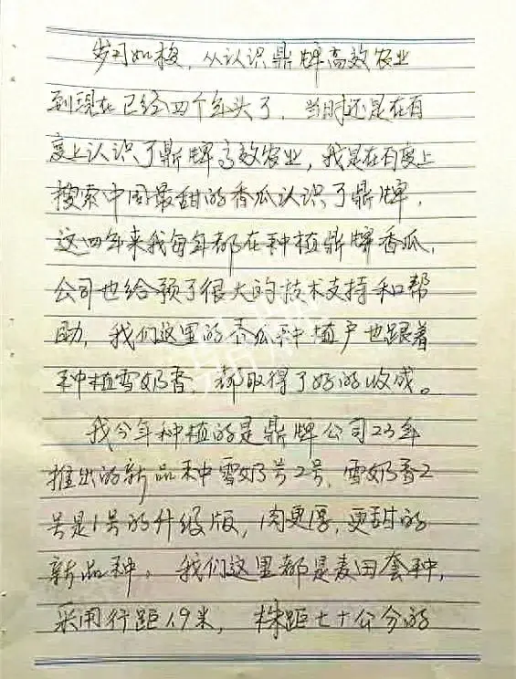 歲月如梭,從認(rèn)識鼎牌高效農(nóng)業(yè)到現(xiàn)在已經(jīng)四個年頭了,當(dāng)時還是在百度上認(rèn)識了鼎牌高效農(nóng)業(yè),我是在百度上搜索中國最甜的香瓜認(rèn)識了鼎牌。這四年來,我每年都在種植鼎牌香瓜,公司也給予了很大的技術(shù)支持和幫助。我們這里的香瓜種植戶也跟著種植雪奶香,都取得了好的收成。