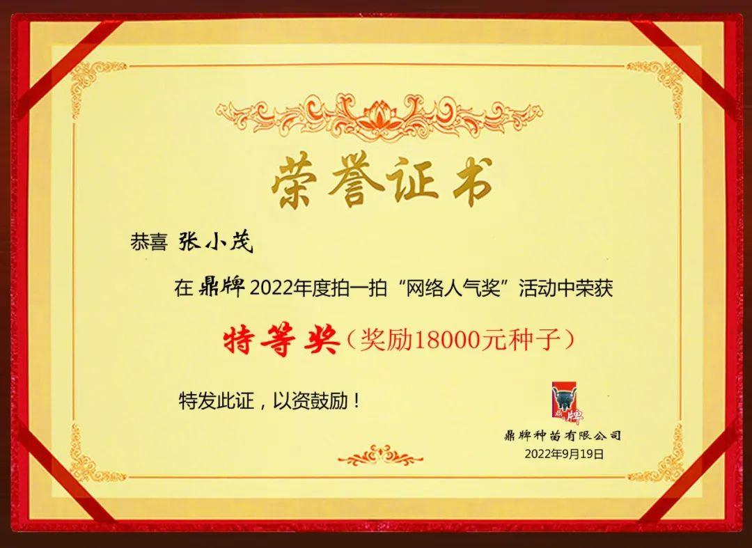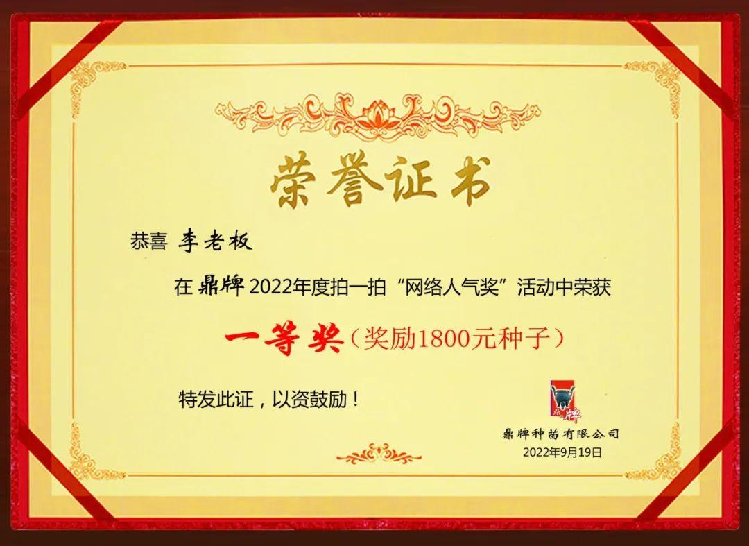 獎品:18000元鼎牌種子