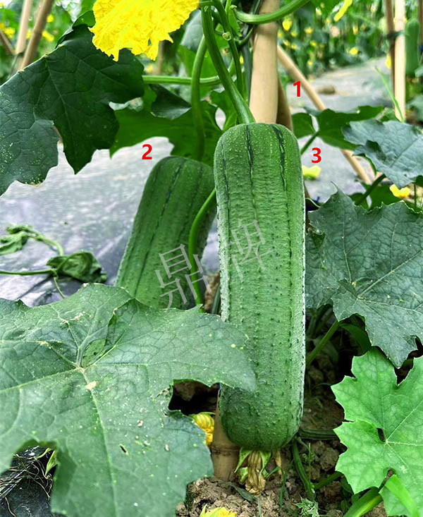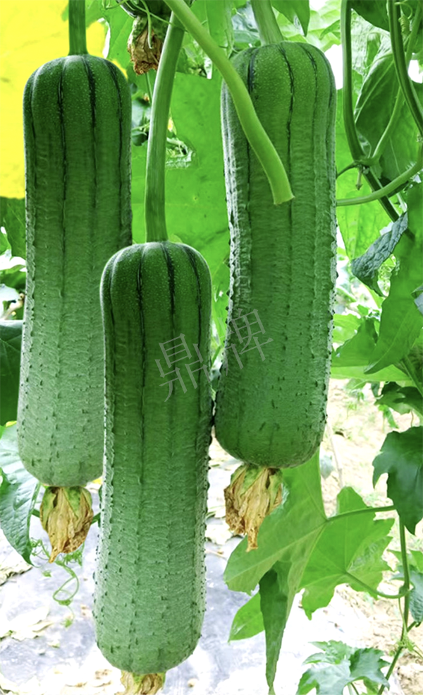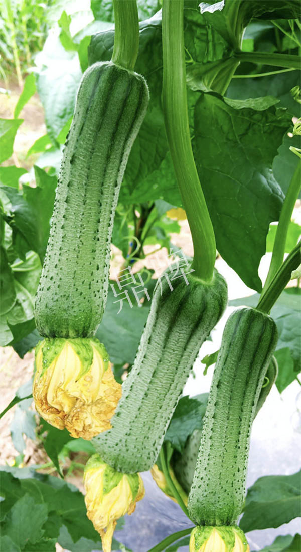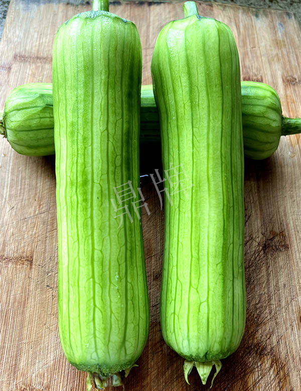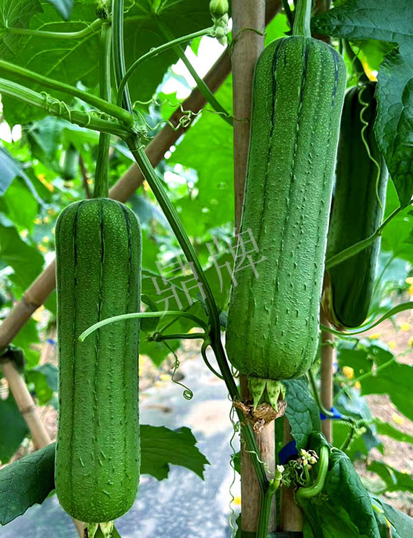三倍體硬果絲瓜,可增產(chǎn)1倍。早熟,短棒、油光,三倍體絲瓜的果實硬度高,果肉緊實,口感親甜。已申請國家新品種保護。用種:9~10袋/畝。